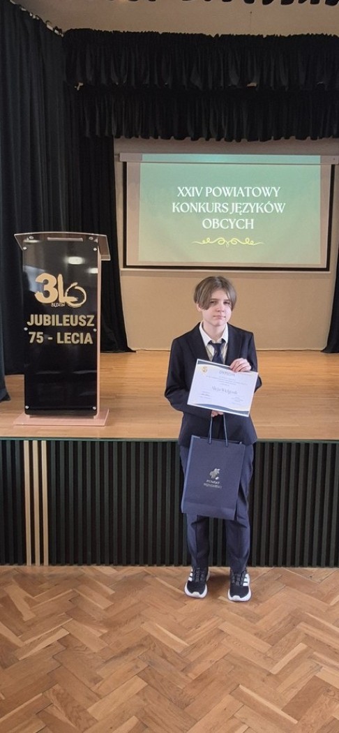 Konkurs zgromadził wielu utalentowanych uczestników z całego powiatu, a jego poziom był niezwykle wysoki. Nasza reprezentantka wykazała się doskonałą znajomością języka angielskiego, szeroką wiedzą kulturową oraz umiejętnością praktycznego posługiwania się językiem w różnych sytuacjach.