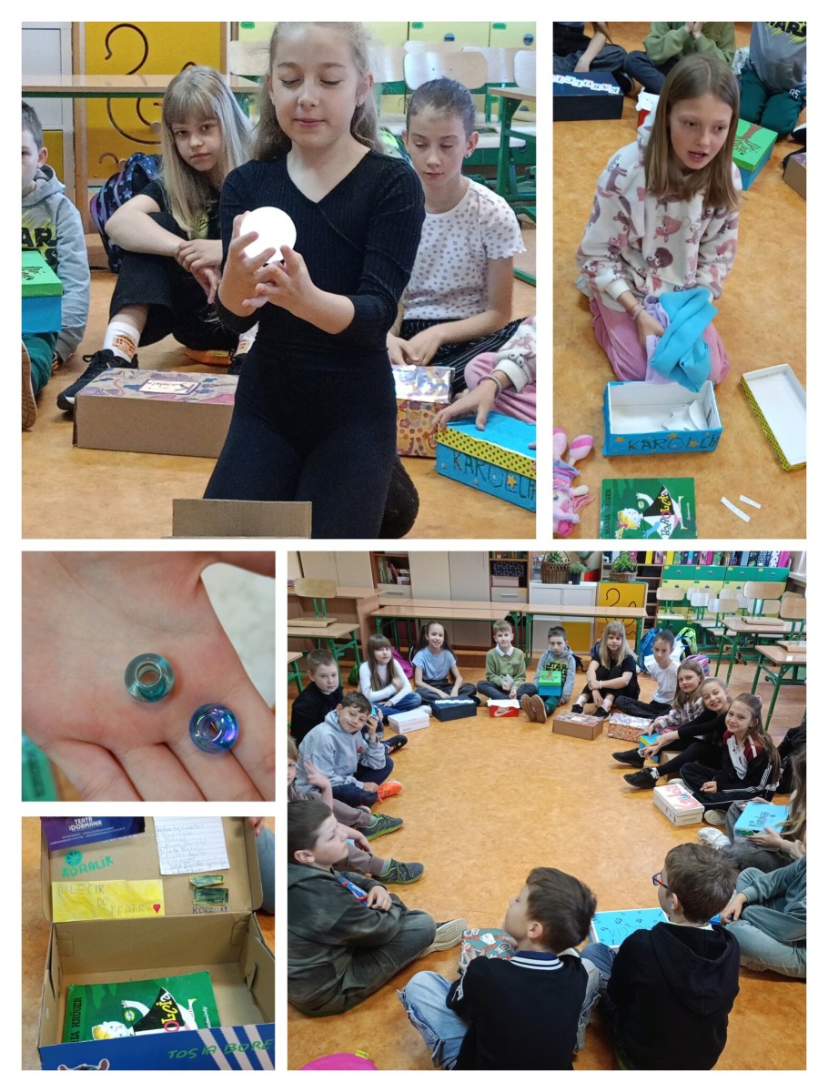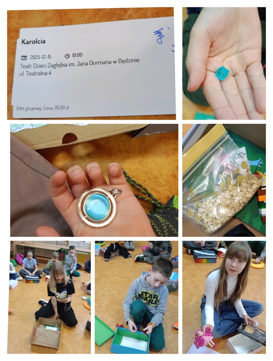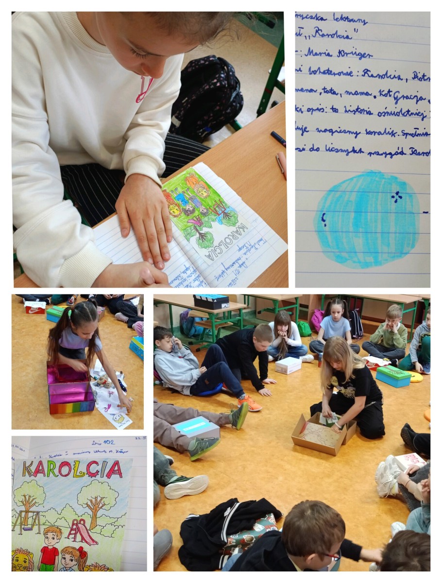 Uczniowie klasy 3b w trakcie czytania lektury „Karolcia” kolekcjonowali różne przedmioty związane z treścią książki. Najwspanialszym momentem było przyniesienie pudełek do szkoły i prezentacja ich zawartości przed całą klasą.
